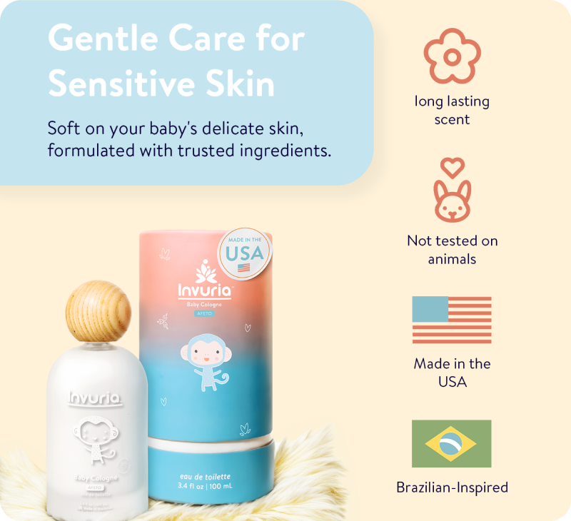 Our baby cologne is made from high-quality, natural ingredients. It includes essential oils and botanical extracts, ensuring it is safe and gentle for your baby's delicate skin. Our products are free from parabens, phthalates, sulfates, and artificial dyes. We prioritize using only safe, natural ingredients in our products.